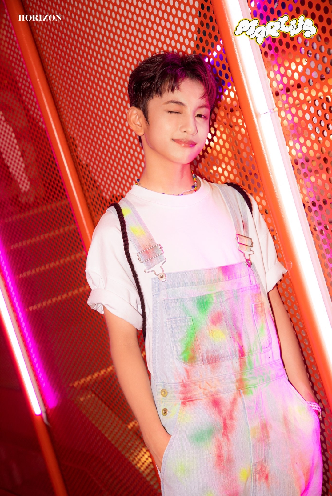 “Hello. I am Marcus, 13 years old and I am the maknae of HORI7ON. Many people say I’m too young, but please understand that this is what I love to do. I love to perform in front of people. Actually, I’ve been performing since I was a kid. I was casted as the young Simba in the Lion King musical when I was 8 years old. I used to be a part of Team Yey! tv program and also took part in the movie My 2 Mommies. I hope you all support me in my journey, together with my HORI7ON brothers, towards being a global idol. Thank you so much and please take care of me!”