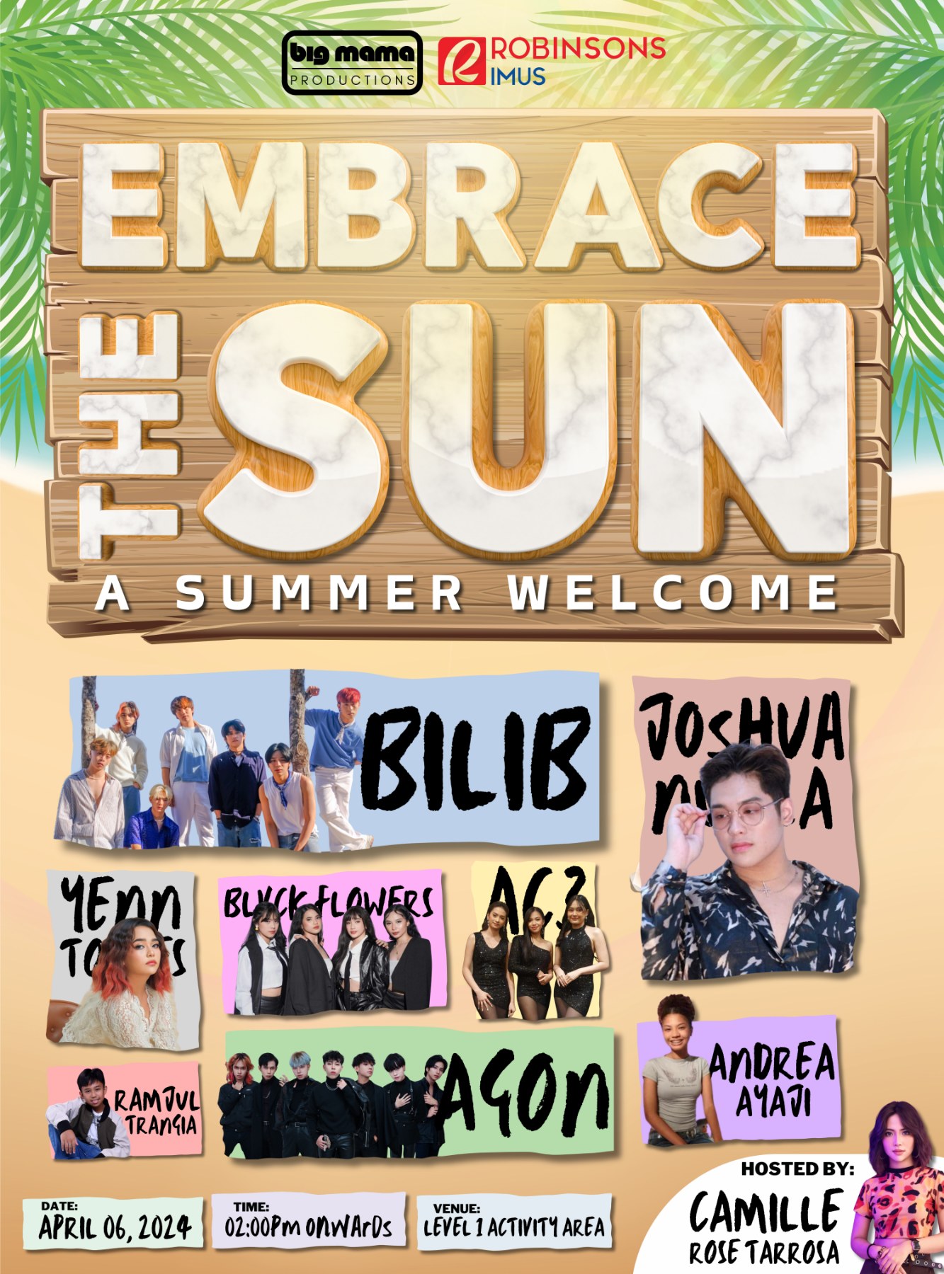 Join us for a sizzling summer extravaganza filled with music, fun, and unforgettable moments. Together with your favorite PPOP Artists, come and join us at the EMBRACE THE SUN: A Summer Welcome Mall Show at