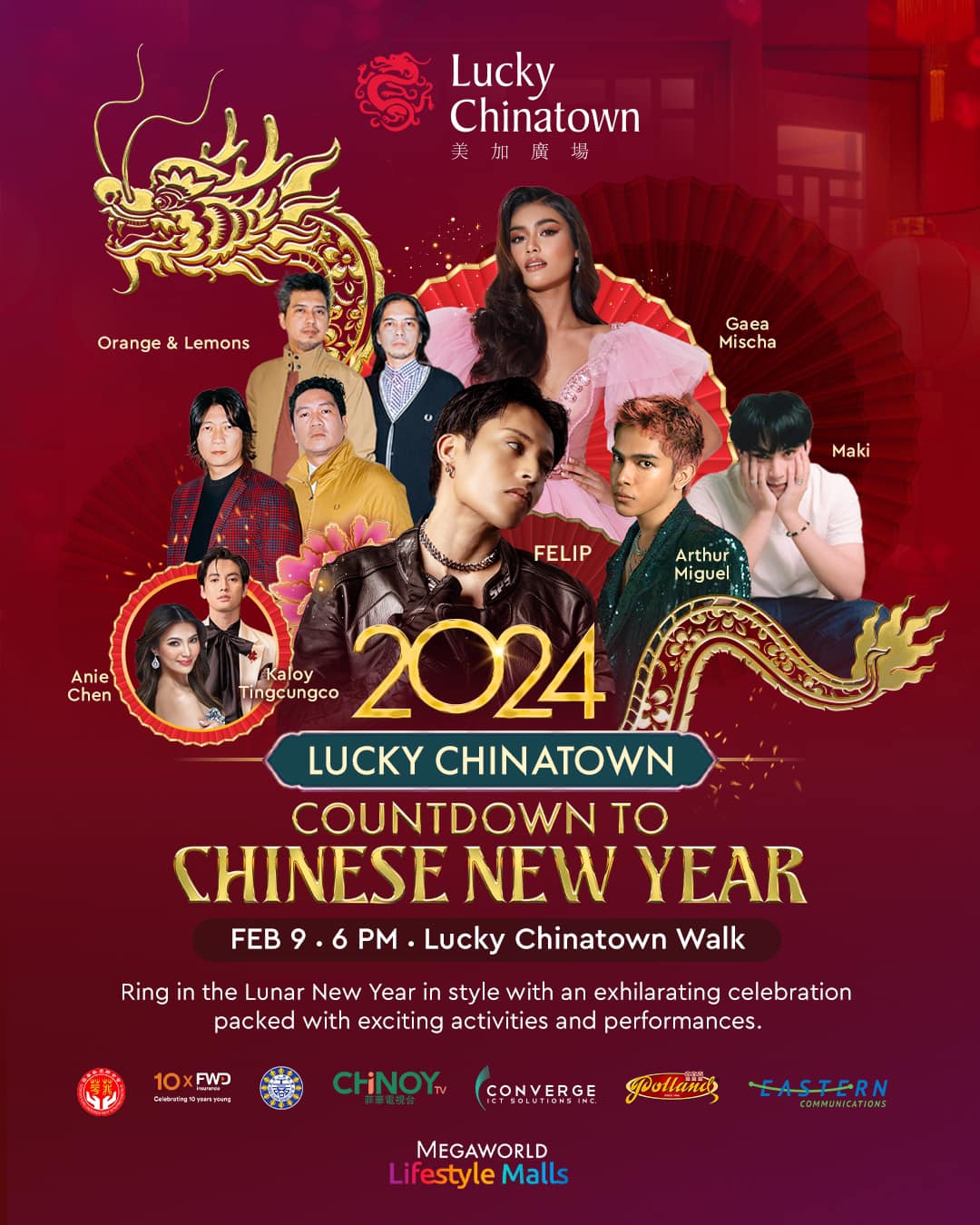 Embrace the magic of the most awaited Chinese New Year countdown at #LuckyChinatown with the biggest and rising stars: Gaea Mischa, Maki, Arthur Miguel, Orange and Lemons, and FELIP. ![]()