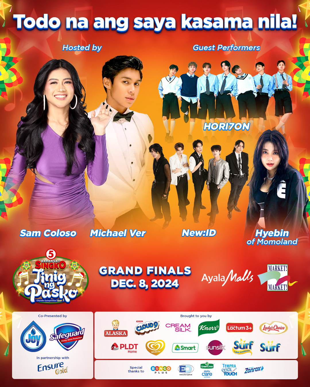 Jam-packed ang #TinigNgPaskoChoraleCompetition Grand Finals! Present ngayong Linggo sina Sam Colosso at Michael Ver with special performances ng P-Pop Idols na Horizon at New: ID at Kpop start Hyebin ng Momoland. Kitakits