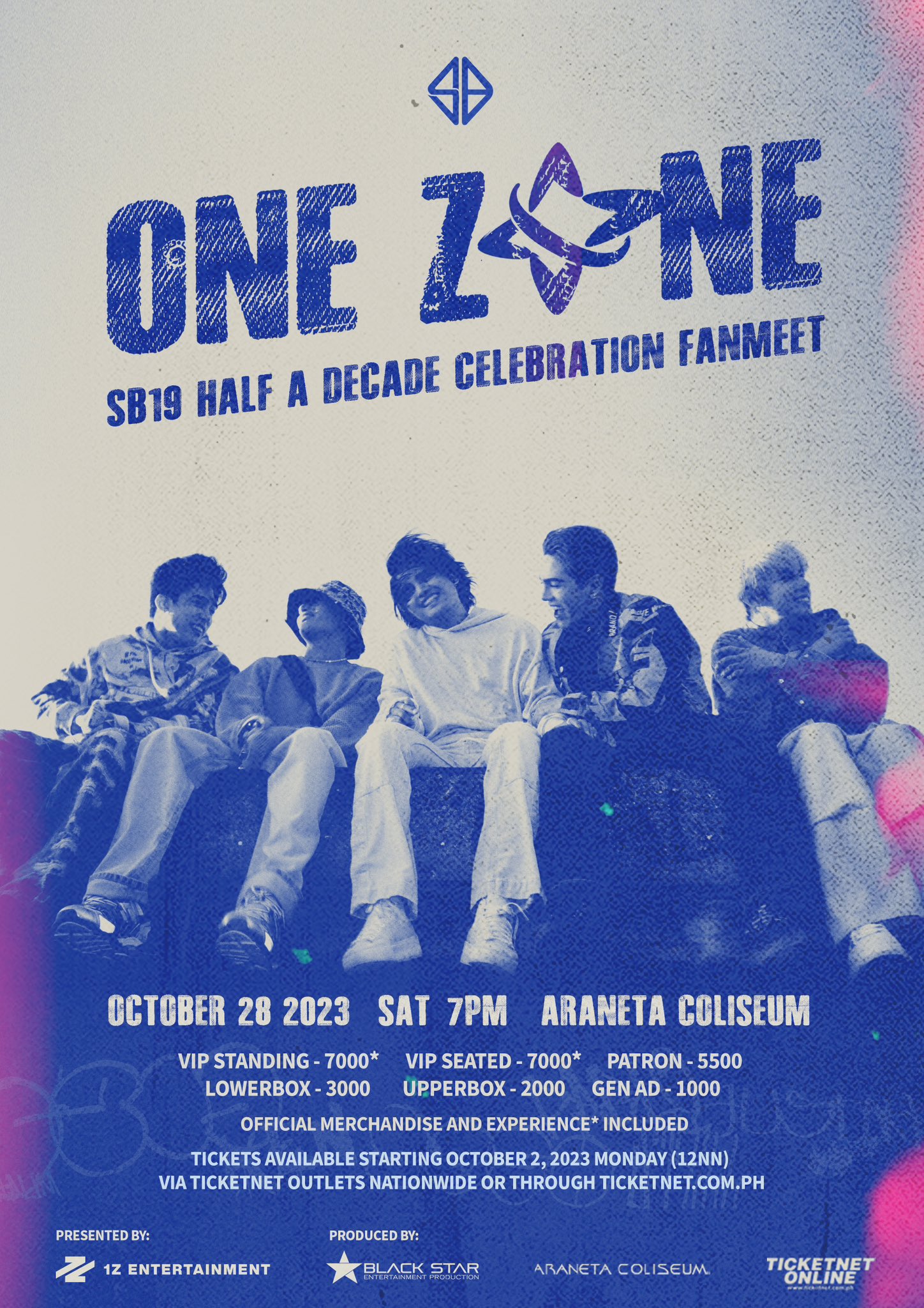 🔹 ONE ZONE [SB19 HALF A DECADE CELEBRATION] Get ready to step into ‘One Zone’ A’TIN! Join us on October 28, 2023, at 7PM at the Araneta Coliseum for the SB19